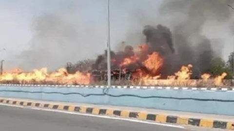 Highway 'ਤੇ ਮਚਿਆ ਕਹਿਰ: ਕੈਮੀਕਲ ਨਾਲ ਭਰਿਆ ਟੈਂਕਰ ਪਲਟਣ ਮਗਰੋਂ ਲੱਗੀ ਅੱਗ.